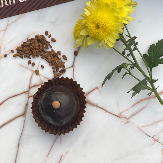 Coffee & Roasted almond, crunchy caramel praline center lined with the smoothest columbian chocolate, with...
