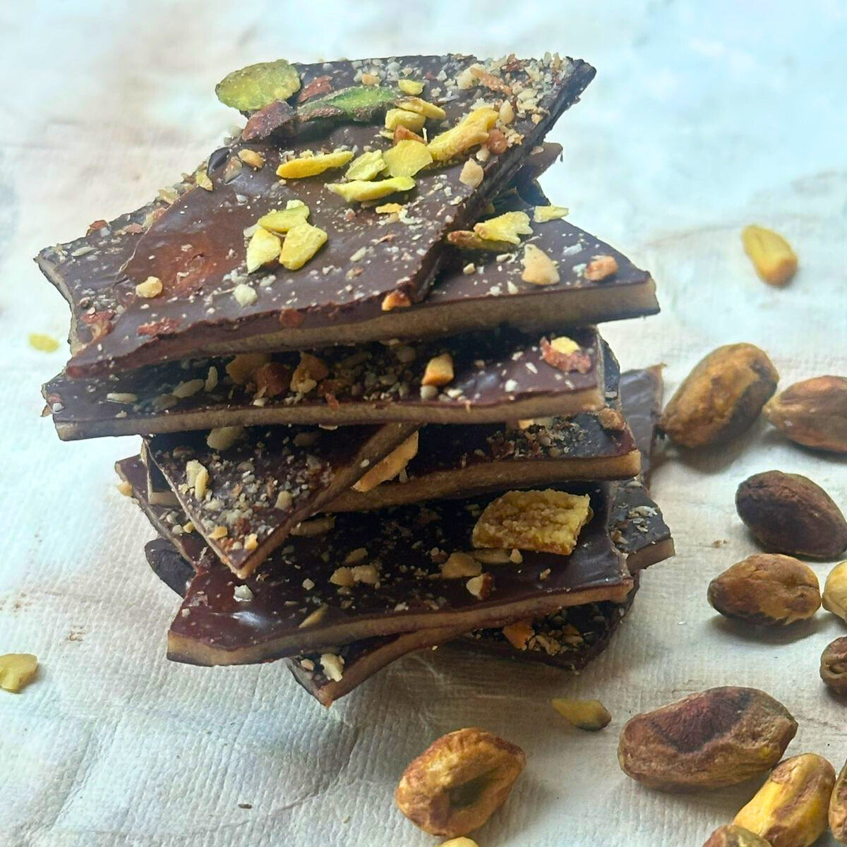 Pistachio & Maldon Sea Salt, crunchy caramel praline center lined with the smoothest columbian chocolate.